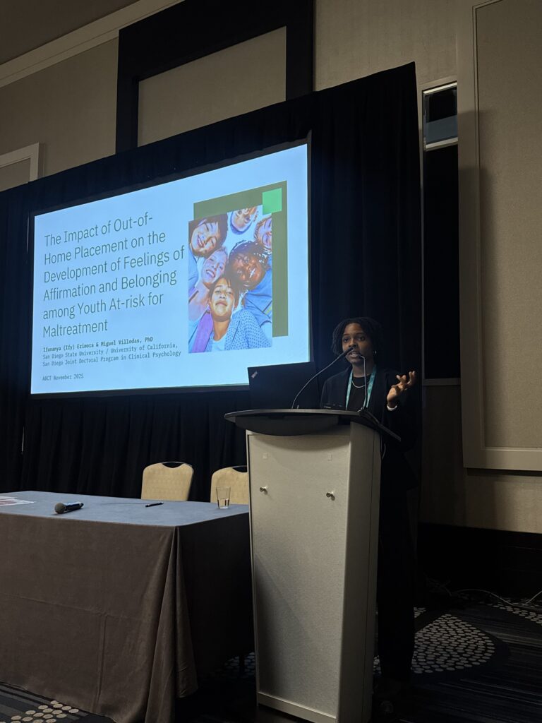 Second year doctoral student Ifunanya (Ify) Ezimora attended ABCT in New Orleans as a first-time attendee and presenter. Ify delivered an individual oral presentation on ethnic-racial identity (ERI) as a protective factor for youth experiencing adversity (e.g., youth involved in the child welfare system) and the negative impacts that being removed from biological parents can have on the development of ERI.